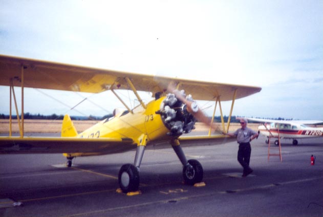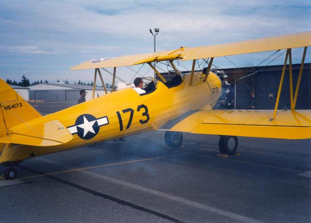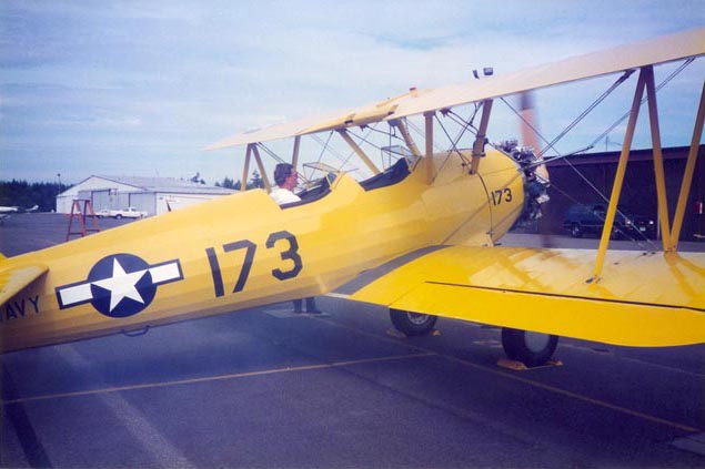 Lee Searles in the pilot's seat - ready to start her up the very first time after the restoration.
