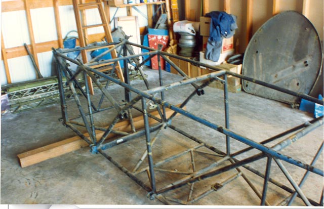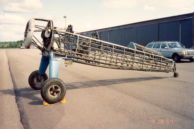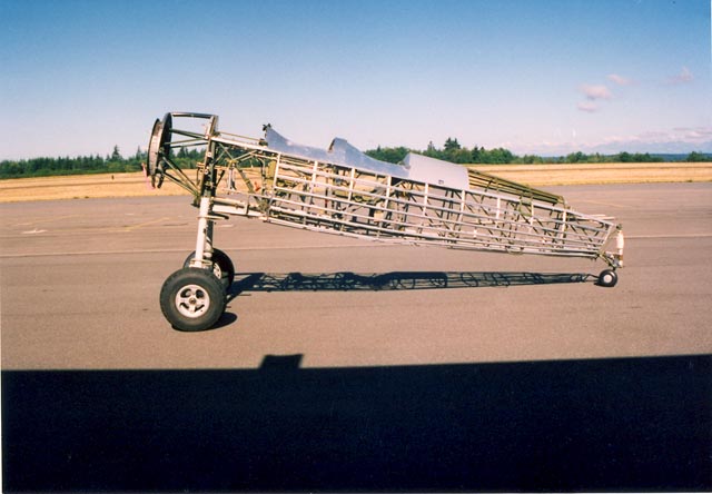Shows the fuselage frame during disassembly. The frame was then magnafluxed, glass beaded, primed, painted and the internal frame was reoiled before reassembly began.